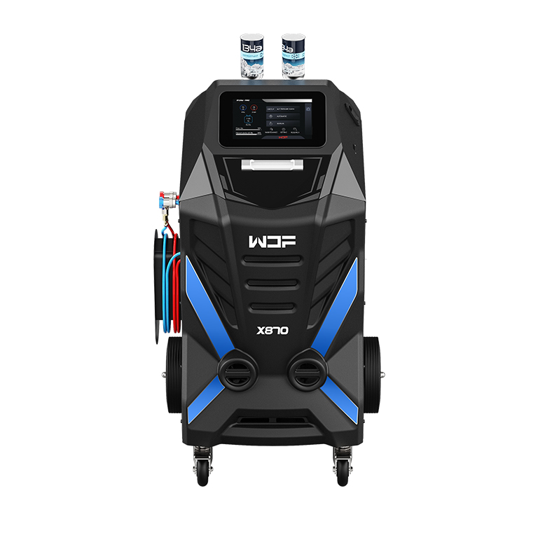 X870是行业内首台小罐制冷剂定量加注的全自动冷媒机,同时兼容大罐制冷剂加注。彻底解决了小罐加注时凭经验、看压力完成加注的不规范操作。设备内置多达6万条车型数据库,对精准加注提供更具参考价值的技术保障。对空调系统内部的全面清洗,精准加注全新小罐制冷剂及冷冻油是空调养护项目的刚需,X870全面满足维修门店的这一需求,使之成为众多维修企业的盈利神器。