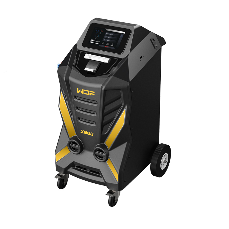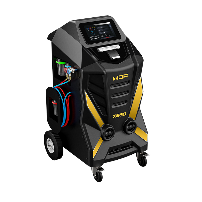 X868采用10寸折叠触摸屏的设计,全数字化呈现系统压力、温度、回收加注重量。大视液镜配合动态清洗界面,让空调系统的清洗过程实现可视化、数字化。全新设计的程序可全自动完成对汽车空调制冷剂的回收、抽真空、加注、清洗、检漏等必要功能。软硬兼施的配置改善了设备排出冷冻油的能力,使换油率高达80%以上,让汽车冷、净前行。